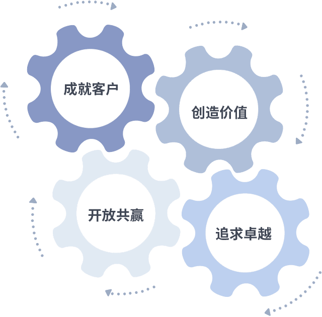 成就客户是一切决策的出发点,,,,创造价值是衡量所有工作的标准,,,追求卓越是东升国际做事做人的态度,,,,开放共赢是东升国际的格局也是最终的结果。。。。价值观的齿轮环环相扣,,推动着组织里的每个人不断向前。。